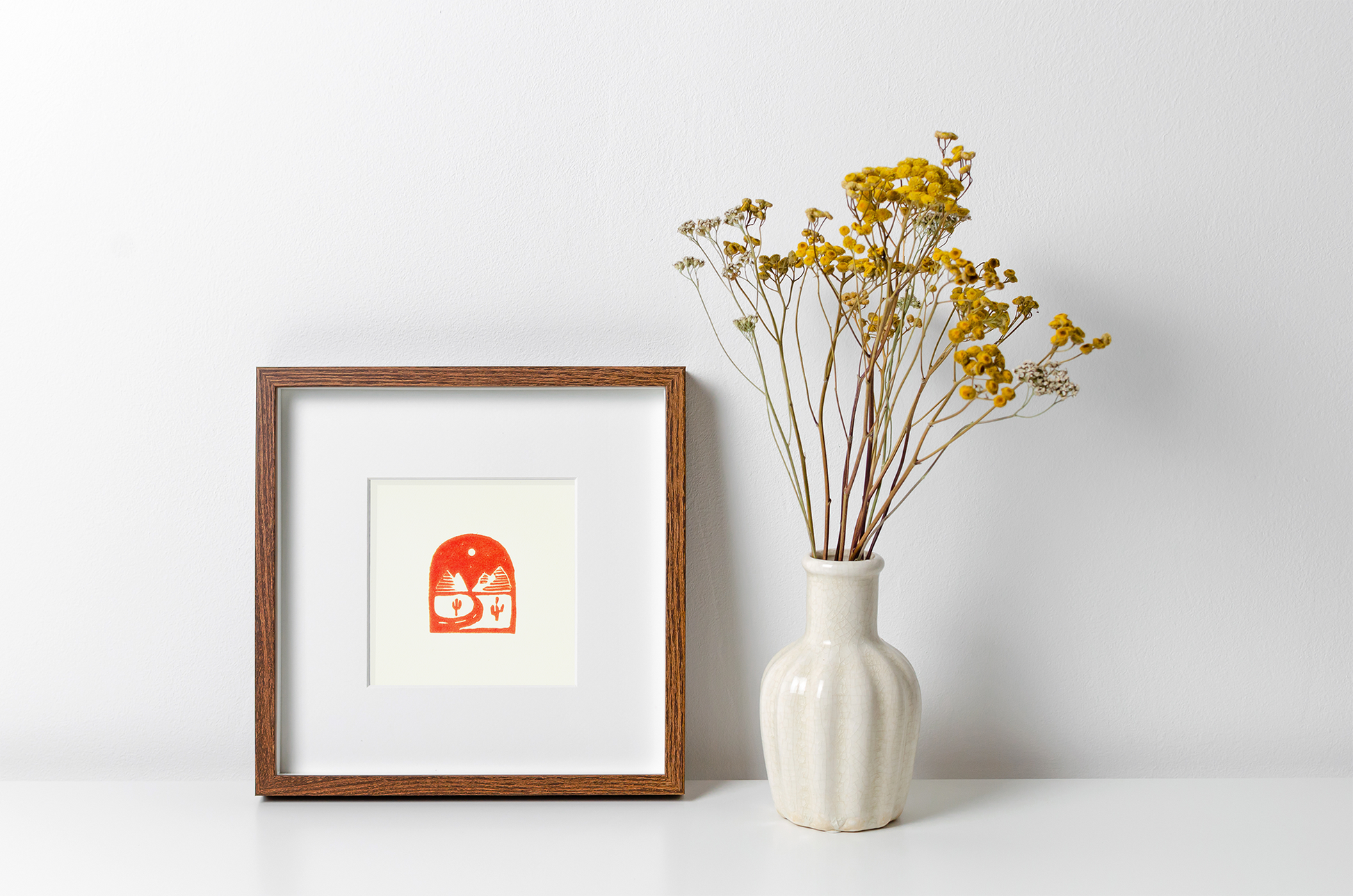 Tässä vedossarjassa on käytetty poikkeuksellisesti laadukasta Fabrianon 250g luonnonvalkoista 100% lumppupaperia, joka tekee siitä japaninpaperia monipuolisemmin kehystettävän ja vahvemman vedoksen.Kellertävä luonnonvalkoinen korostaa kauniisti punaoranssia maisemaa.