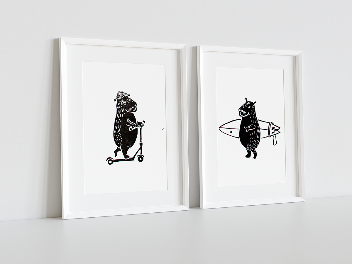 Lasten lemppari käpybara kahdessa aktiviteetissa. Erinomainen lisä pikkutyypin huoneeseen tai osaksi galleriaseinää.